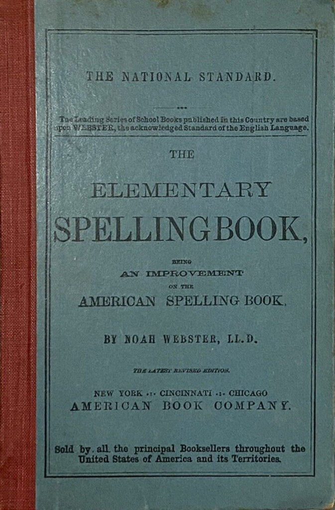 In 1829, after publishing his famous American Dictionary, Webster issued the final revision of his speller, The Elementary Spelling Book, which became known as the “Blue-Back Speller” due to its familiar blue covers. Though overseen by Webster, much of this book was written by New York teacher Aaron Ely. The Elementary introduced changes that distinguish American from British spelling, such as “labor” instead of “labour” and “center” rather than “centre”. Of all Webster’s books, only the speller had a long-term market presence, dominating the field from 1790 through the Civil War era and selling approximately 70 million copies into the 20th century. An estimated 200 million Americans learned to read and write using the Blue-Back Speller and the McGuffey Eclectic Spelling Book.