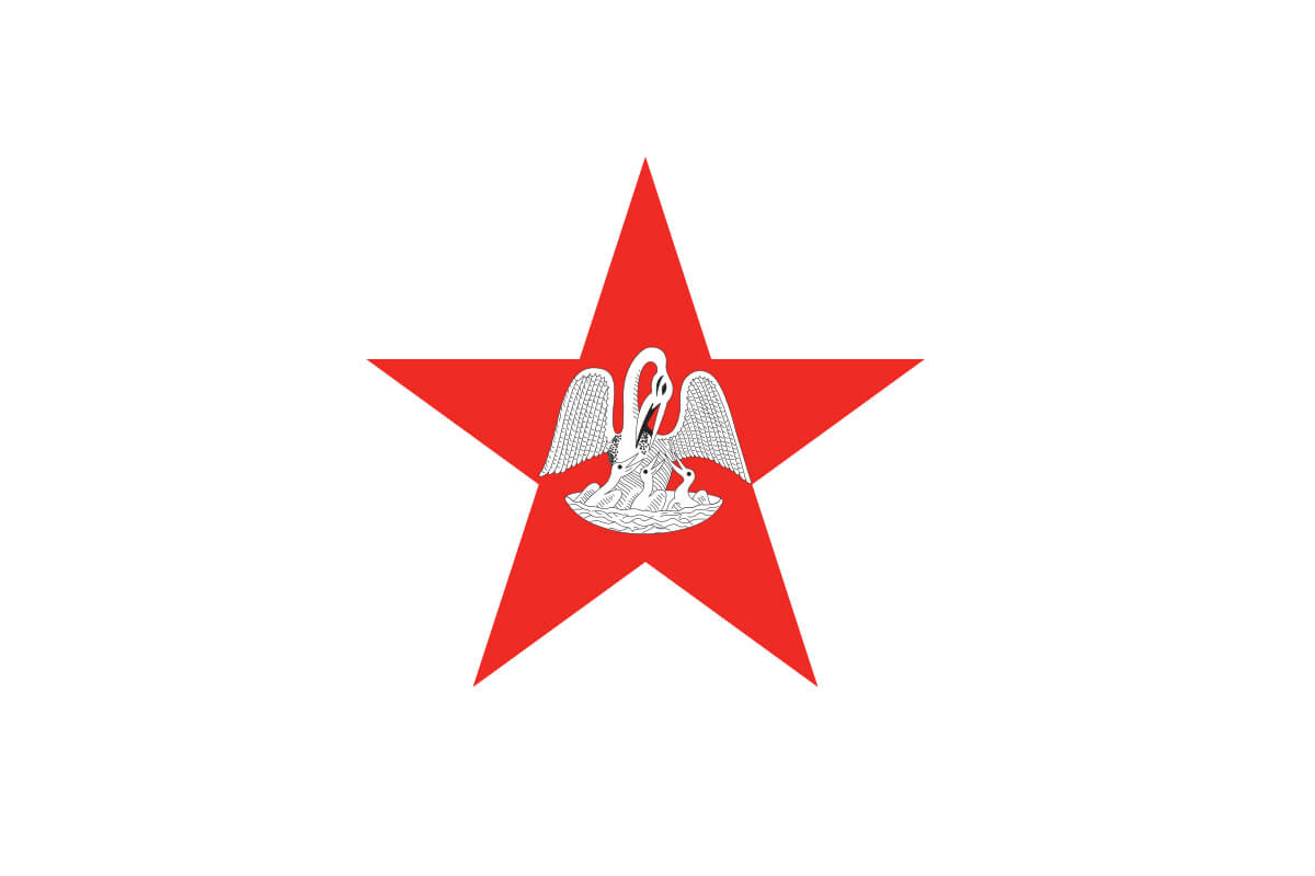 This was the flag of the independent nation of the Republic of Louisiana. It was a modified version of the National Flag of the United States. The flag was based on Louisiana’s strong ancestry. The 13 stripes represent the 13 original colonies of America. However, its stripes repeat the colors of blue, white, and red, the colors of the flag of France, Louisiana’s mother country. The canton had a single gold star placed on a field of red, the colors of the flag of Spain, which once held dominion over Louisiana.