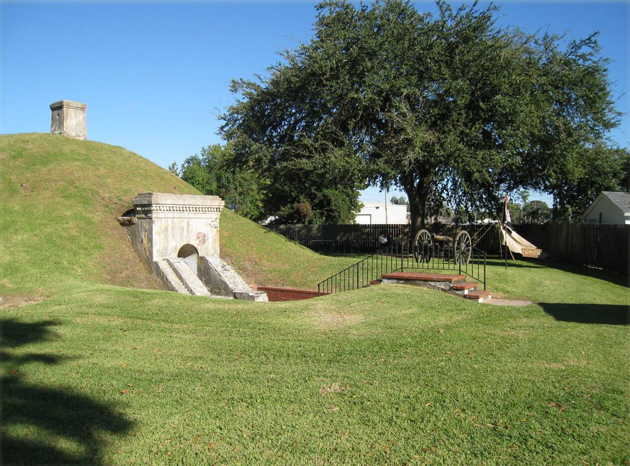 Originally, Fort Morgan was a massive Confederate fortification located in Jefferson Parish on the Mississippi River, built to defend New Orleans from Federal assault. After its capture by Federal forces, it was renamed Camp Parapet and expanded to defend against potential Confederate counter-attacks. Today, only one of its powder magazines remains.