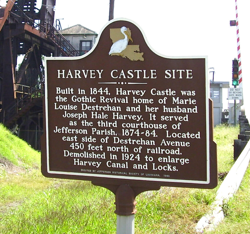 The Harvey Castle Site Highway Marker is significant because it marks the location of a prominent 19th-century residence that also played a vital civic role as the Jefferson Parish courthouse. Its eventual demolition underscores the dynamic nature of urban development and the impact of infrastructure improvements on historical structures.