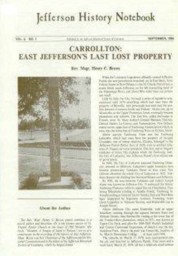 Vol. 3 No. 1 – Carrollton: East Jefferson’s Last Lost Property